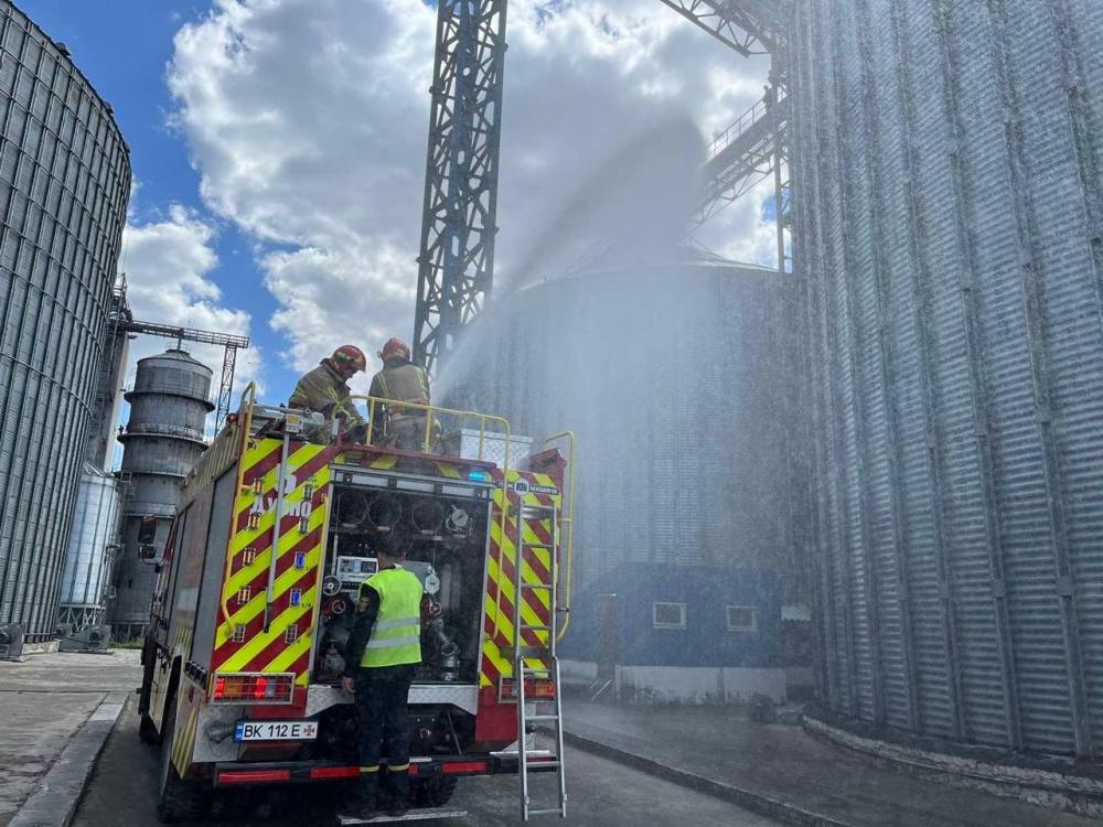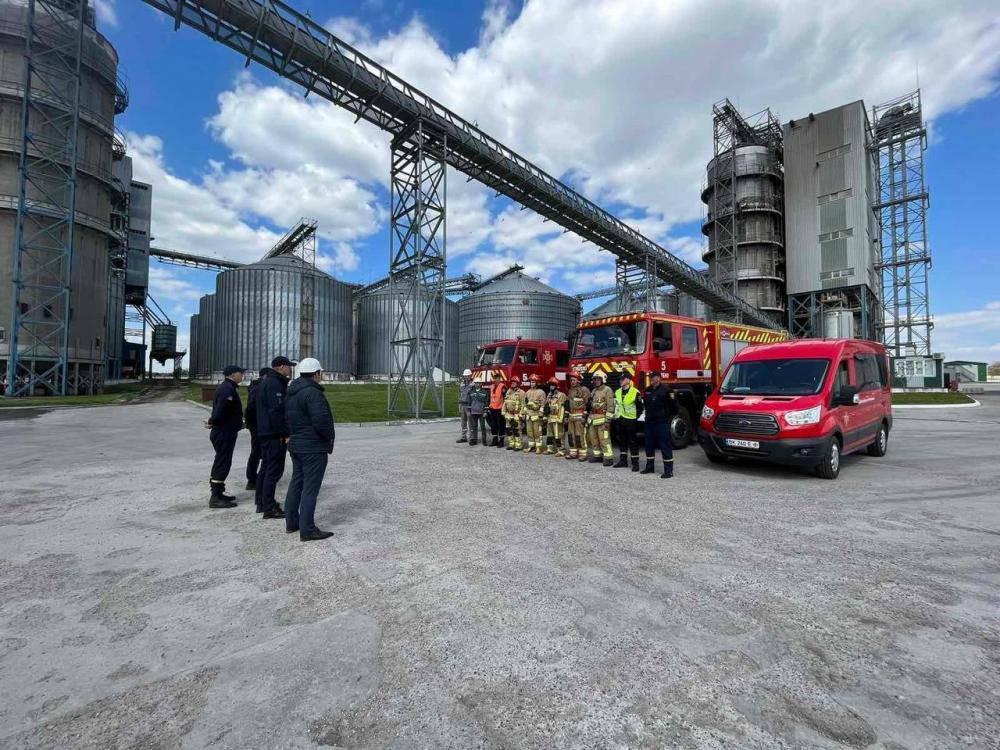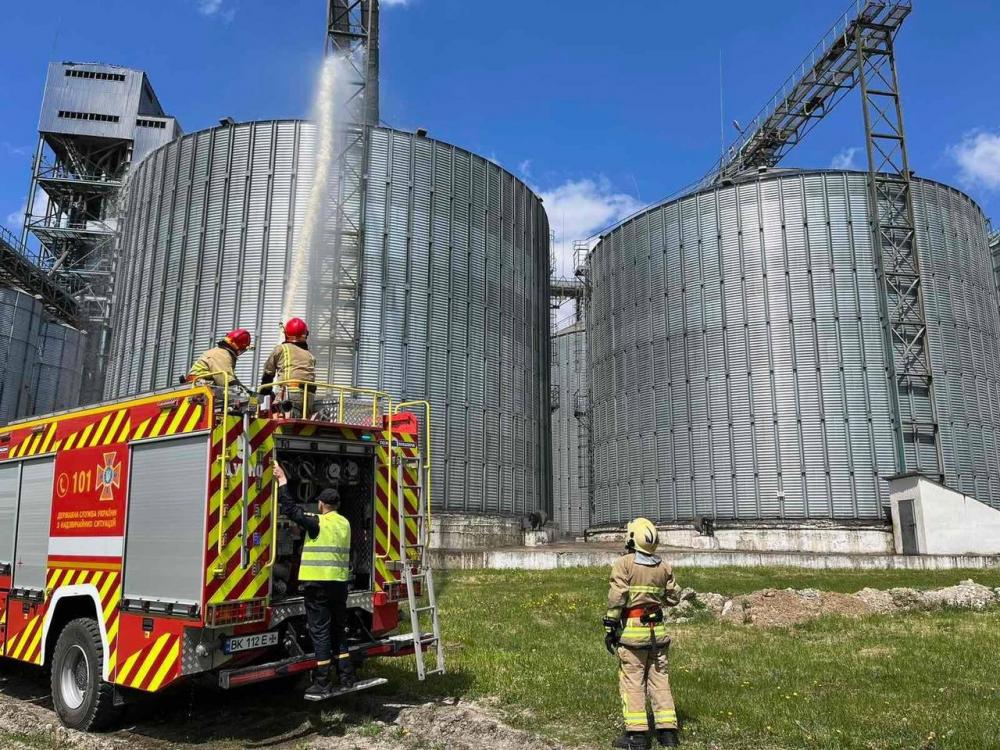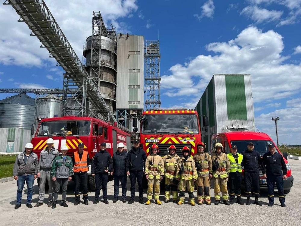 З метою підвищення професійного рівня та швидкого реагування на надзвичайні ситуації та ліквідацію пожеж на Дубенщині рятувальники провели тактико-спеціальні навчання в одному із найбільших зернозбиральних терміналів району.