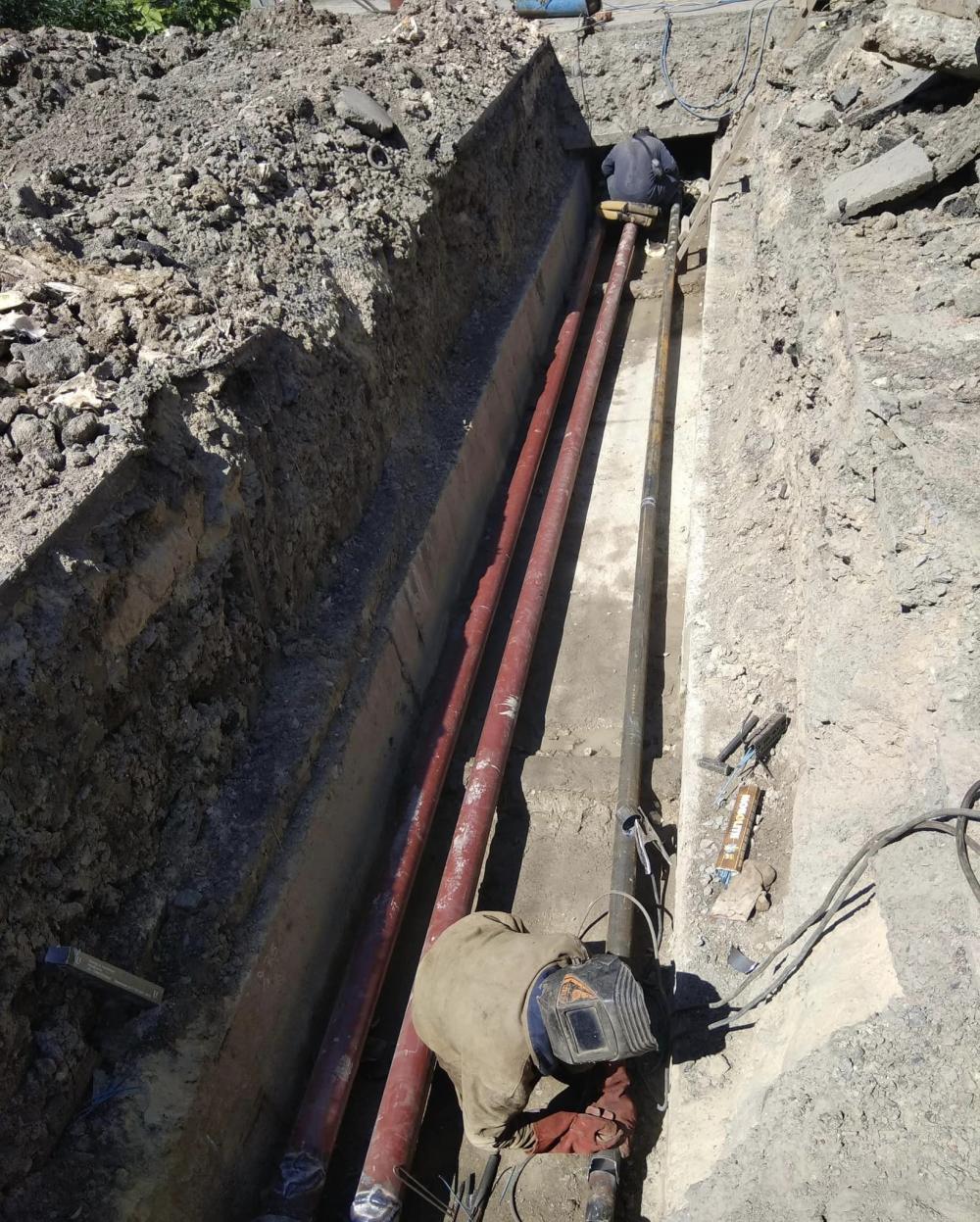 - провели часткову заміну трубопроводів подачі теплоносія від теплової камери ТК-46б в сторону житлового будинку на Відінській, 42;