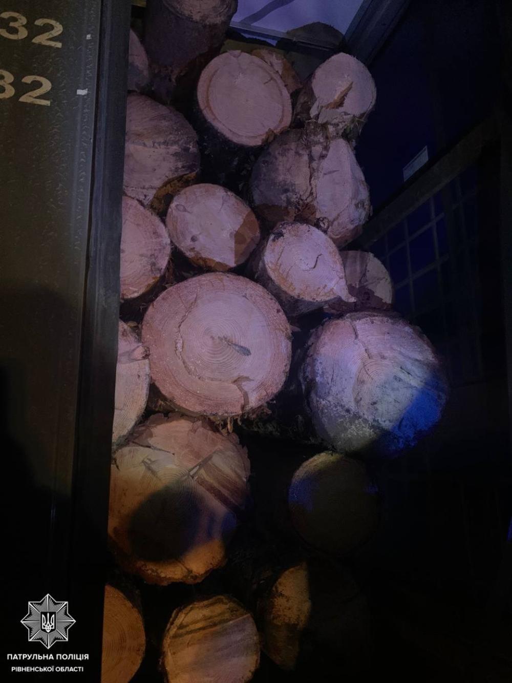 Під час перевірки документів та огляду напівпричепа автівки поліцейські виявили, що транспортний засіб був завантажений колодами. Водій відповідних документів для перевірки не надав.