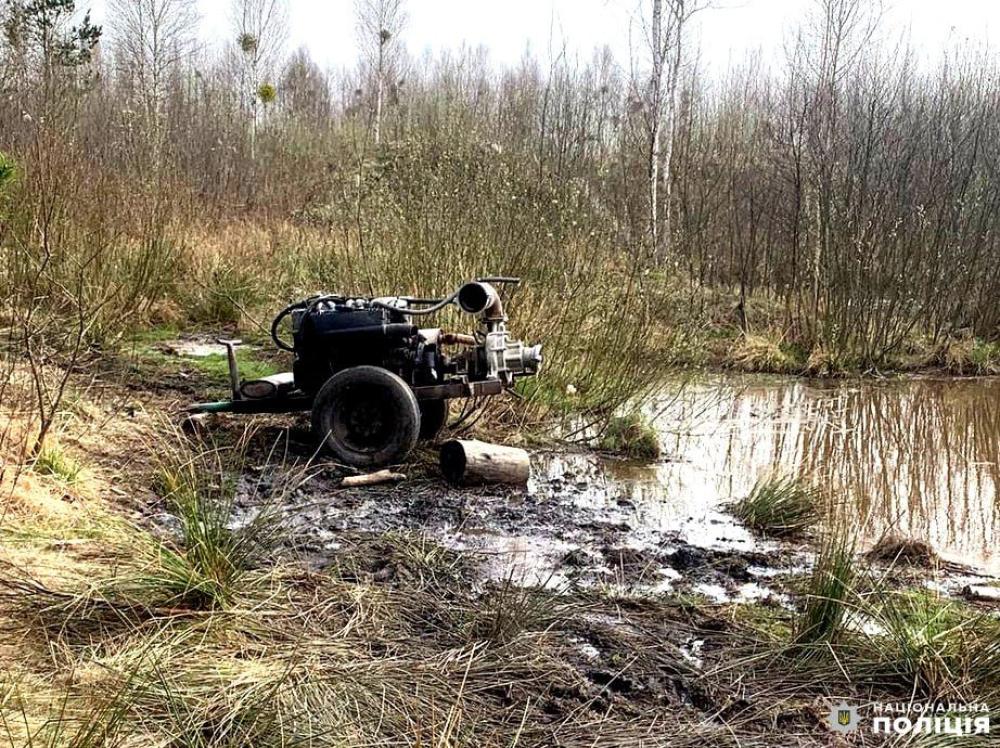 Дві мотопомпи правоохоронці вилучили у лісовому масиві неподалік села Тиховиж. Осіб, які займалися незаконним промислом, встановлюють.
