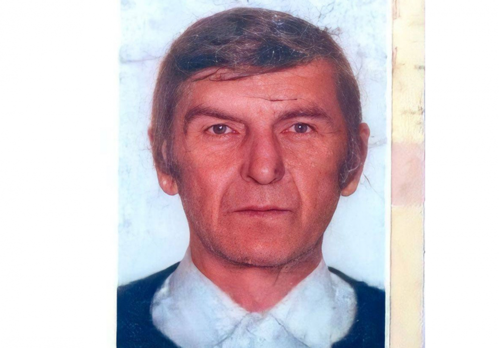 Прикмети: худорлявої тілобудови, волосся сиве, очі темні. Був одягнений у чорну куртку і темні штани.