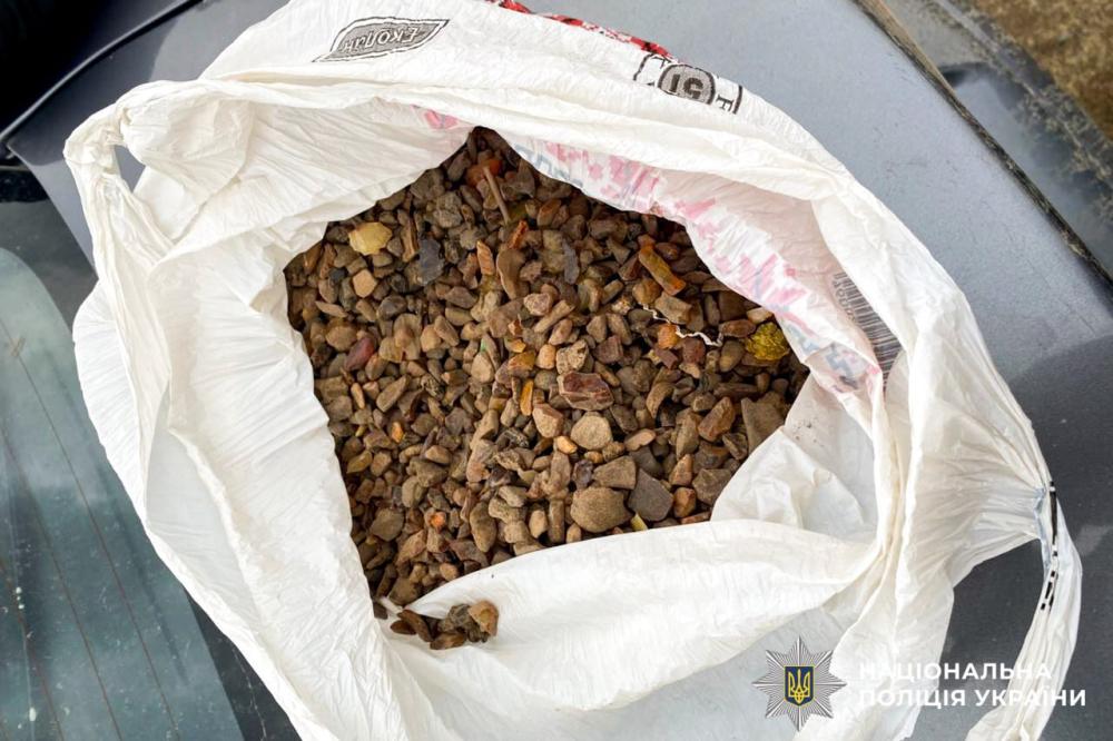 Учора в урочищі «Грибний Канал» села Обірки правоохоронці виявили у 35-річної місцевої мешканки пакет із «сонячним» камінням вагою понад кілограм.