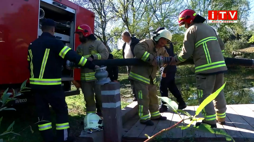 Там команда відпрацьовує забір води в автоцистерну. Завдання не з легких: потрібно під'їхати максимально близько до води, зібрати спеціальний насос та занурити його у ставок. Через нього вода набирається в автоцистерну, а вже від неї рятувальники протягують рукав для гасіння пожежі.