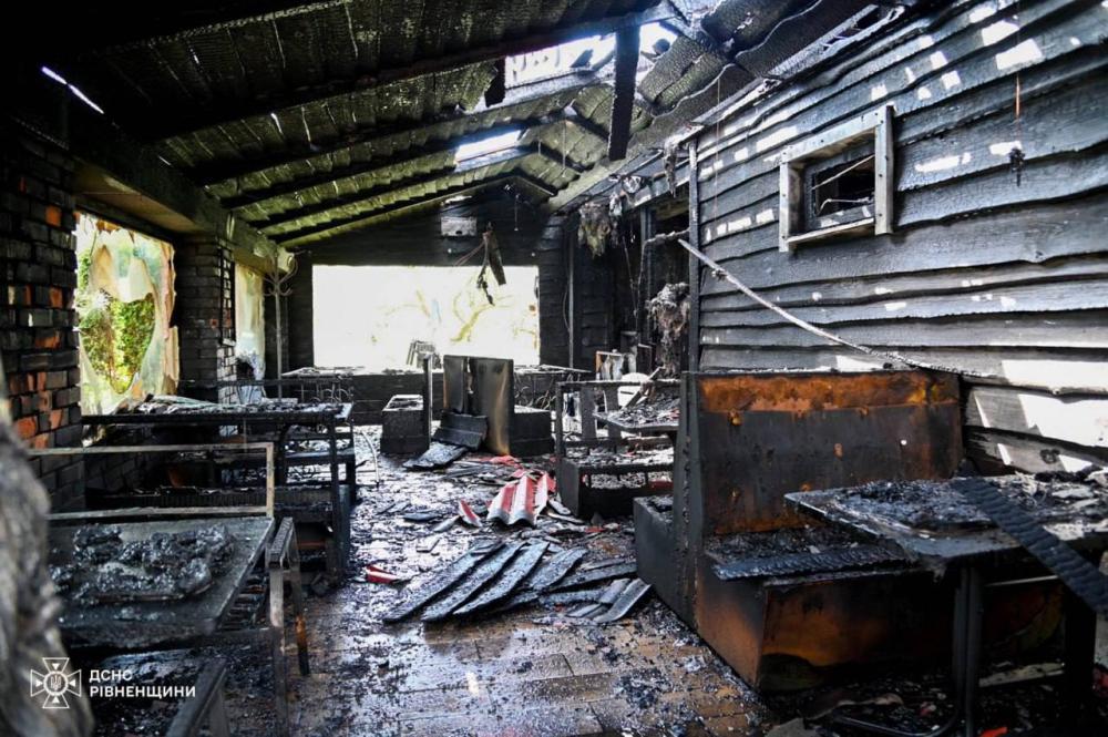 Вогнем знищено перекриття та покриття на площі 120 м², меблі в приміщенні закладу та обладнання на кухні, а також пошкоджено стіни.