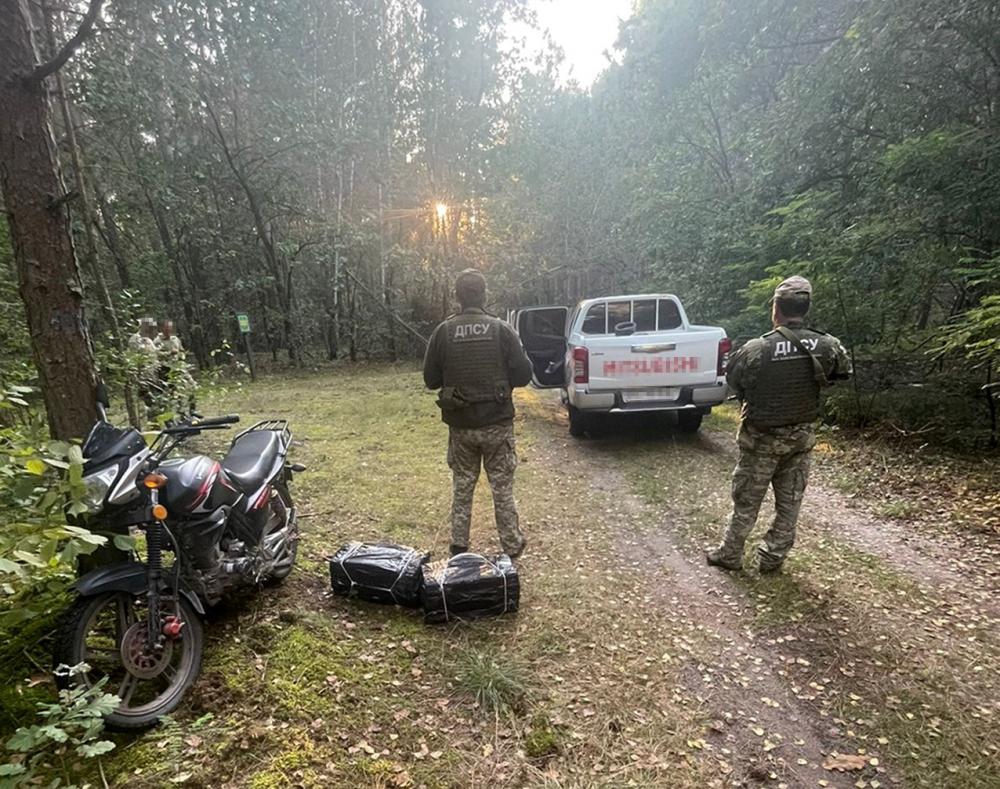 Зловмисники замаскували товар, підготувавши його до переправлення через кордон. Крім того, пошукова група виявила посеред лісу автомобіль та мотоцикл, якими чоловіки підвозили пакунки ближче до кордону.