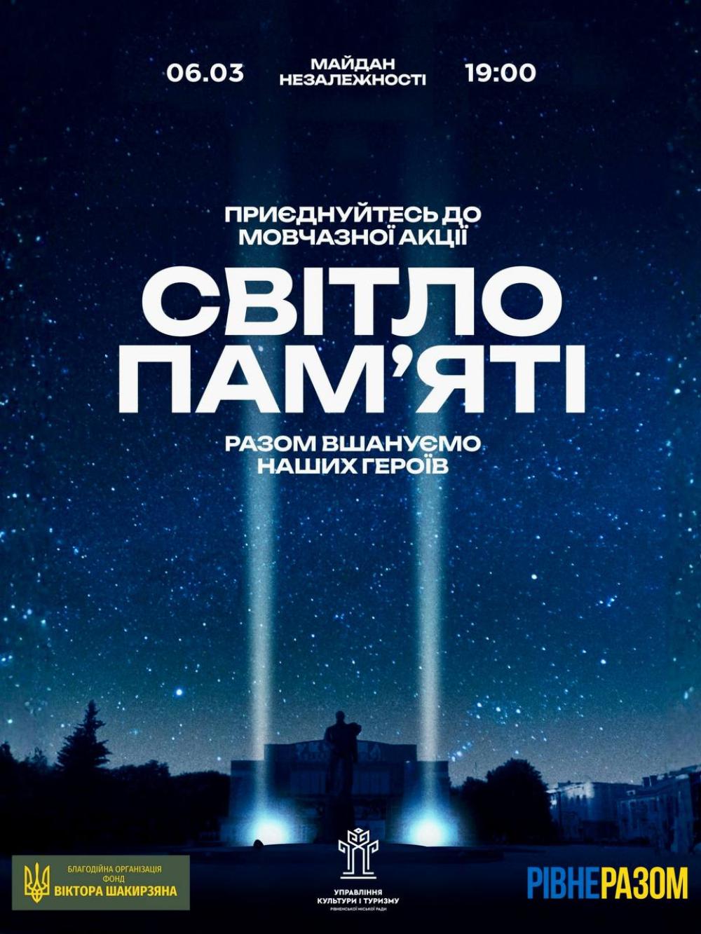 Сьогодні, 6 березня, у Рівному відбудеться мовчазна акція «Світло пам’яті».