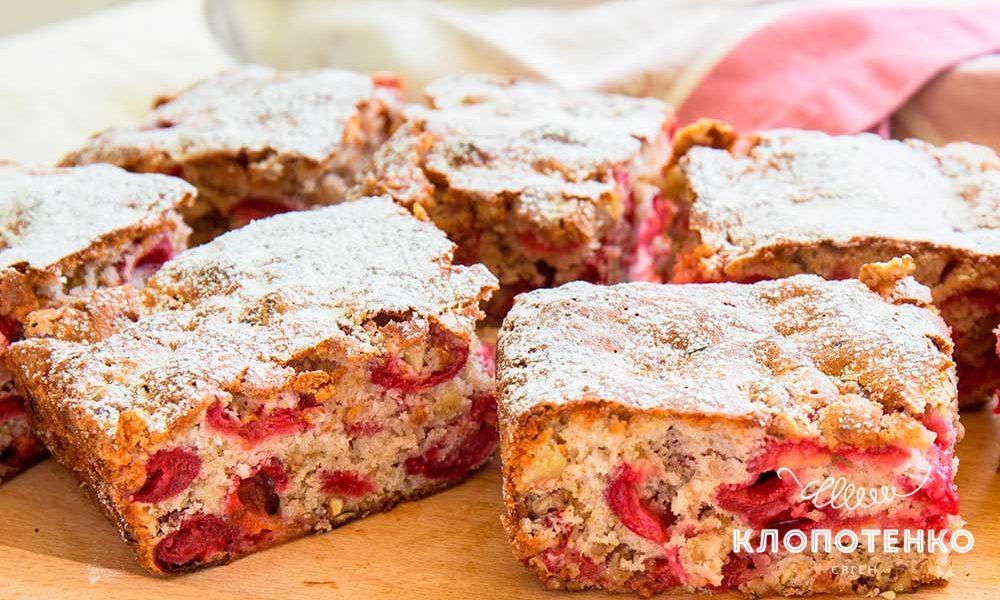 Євген Клопоптенко поділився рецептом простого у приготуванні пирога з вишнями та горіхами, для якого не потрібно додавати ні дріжджів, ні масла, ні молока.