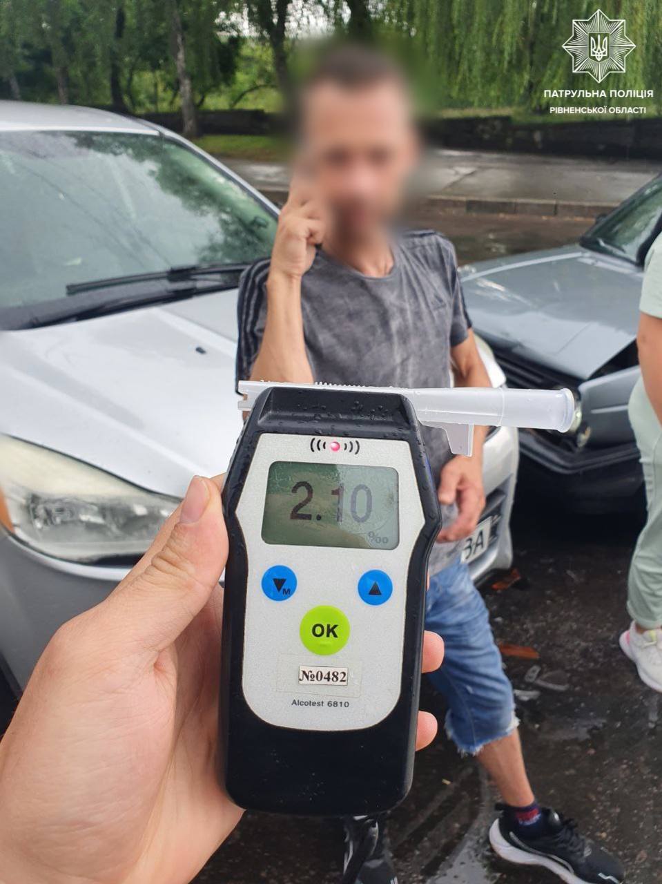 Патрульні запропонували йому пройти огляд на стан сп'яніння на місці за допомогою приладу Драгер. Результат огляду — 2,10 проміле алкоголю в організмі чоловіка.
