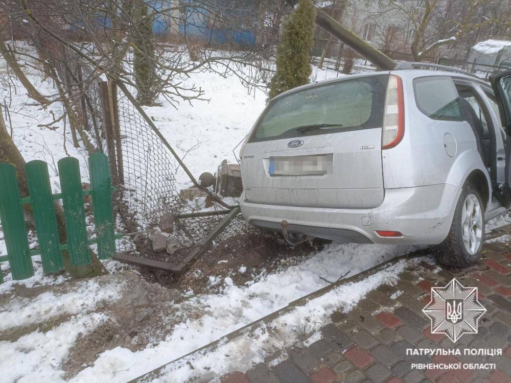 У Сарнах чоловік автомобілем в'їхав у паркан, а аткож зніс електроопору.