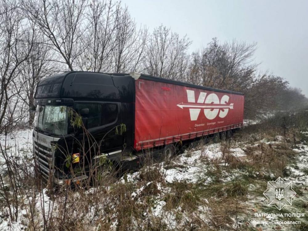 Патрульні притягнули до відповідальності п'яного водія вантажівки, який скоїв ДТП. Сталася подія 21 листопада на автомобільній дорозі М-06 Київ — Чоп. Патрульні з'ясували, що водій Scania з напівпричепом не вибрав безпечної швидкості та не впорався із керуванням.