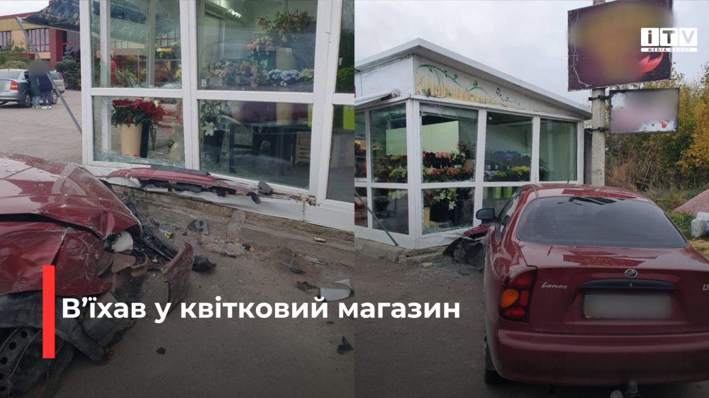 Від удару автомобіль "Lanos" по інерції вʼїхав у квітковий павільйон.
