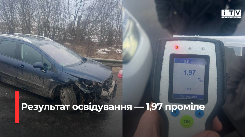 Огляд на місці події за допомогою алкотестера показав результат 1,97 проміле.
