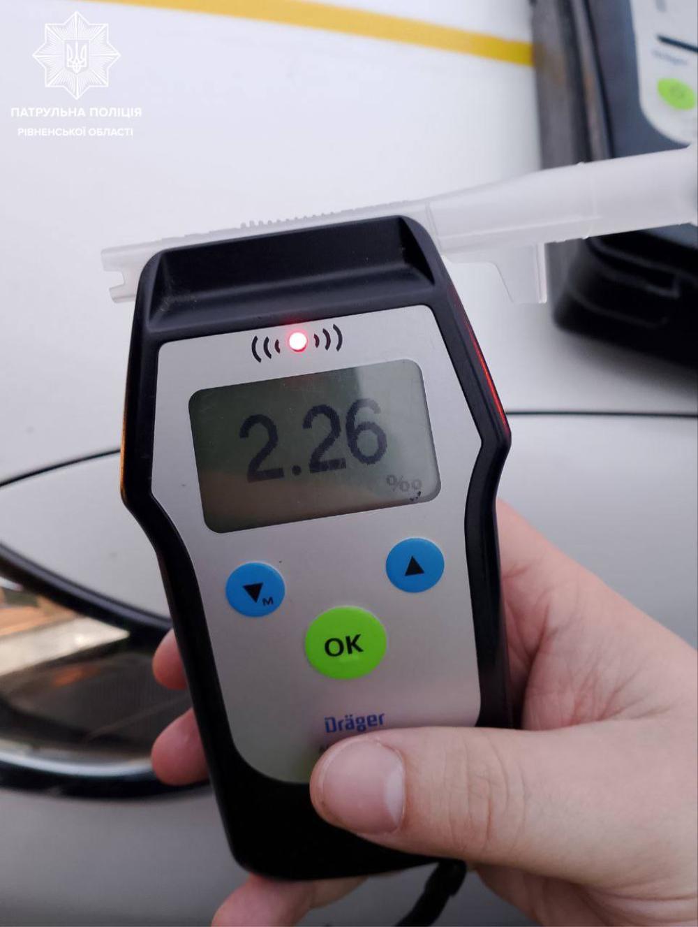 Патрульні на місці з'ясували, що 39-річний водій керуючи автомобілем Сitroen не був уважним і не вибрав безпечної швидкості руху та наїхав на металевий відбійник. Водій не постраждав, однак під час спілкування інспектори у нього виявили ознаки алкогольного сп'яніння. А проведений огляд на місці події підтвердив те, що чоловік сів за кермо напідпитку. Результат — 2,26 проміле.