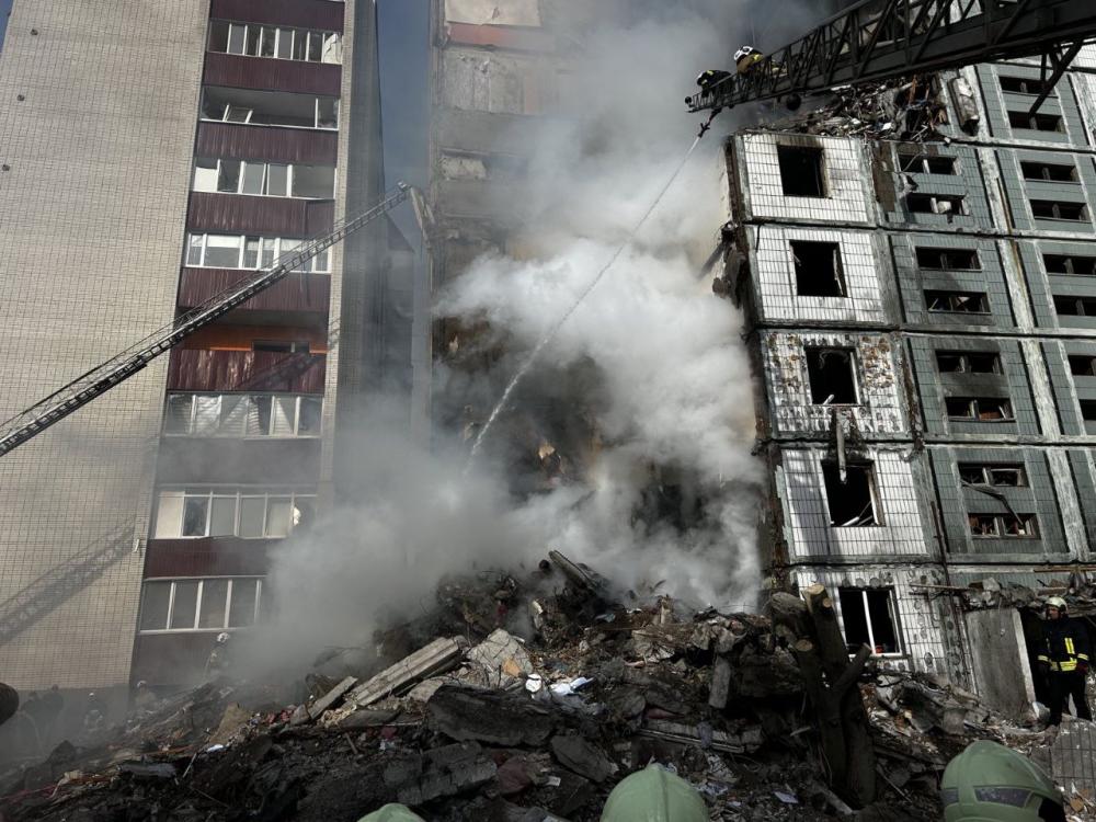 Пошуково-рятувальні роботи на місці ракетних ударів тривають. Відомо, що дві ракети пошкодили три багатоповерхівки.