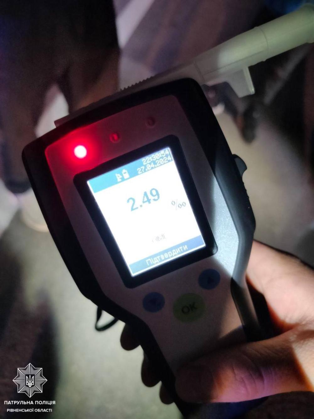 Поліцейські помітили у винуватця події ознаки алкогольного сп'яніння. Результат виявився позитивним — 2,49 проміле алкоголю.