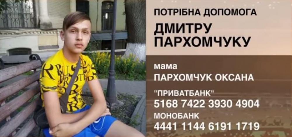 Допомоги потребує учень 9 класу 16 школи м.Рівного Дмитро Пархомчук. Для термінової пересадки кісткового мозку необхідно зібрати 95 000.00 € - це непідйомна сума для родини Діми.