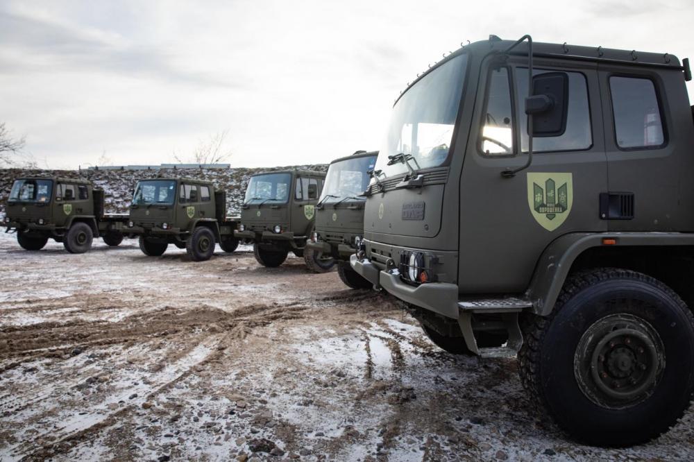 "На ці військові вантажівки DAF, яких ми вже поставили 91 із загального контракту, за нашою спільною ініціативою будуть встановлені зенітні установки – ЗУ-23-2", - розповів Петро Порошенко.
