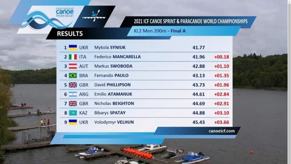 У підсумку Микола Синюк став чемпіоном світу у класі KL2 на дистанції 200 метрів. Наталія Лагутенко виборола бронзову нагороду у класі VL3 на дистанції 200 метрів, а Володимир Вельгун посів 9 місце у класі KL2 на дистанції 200 метрів.