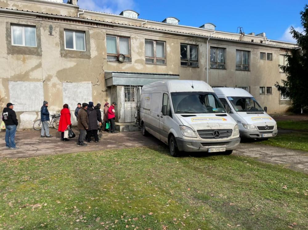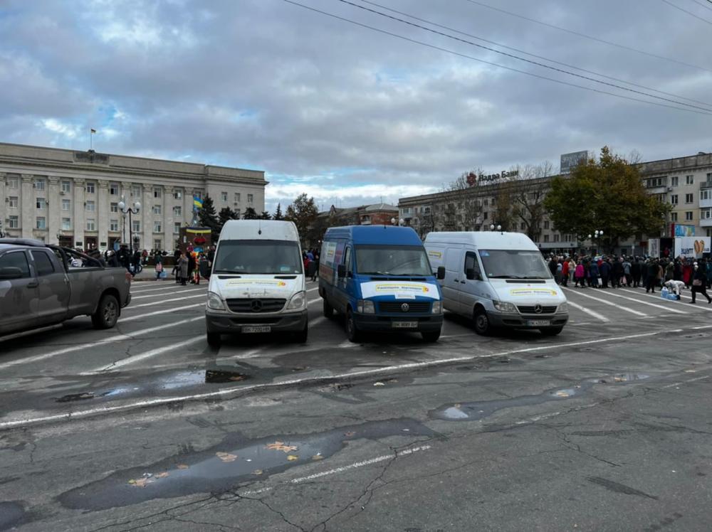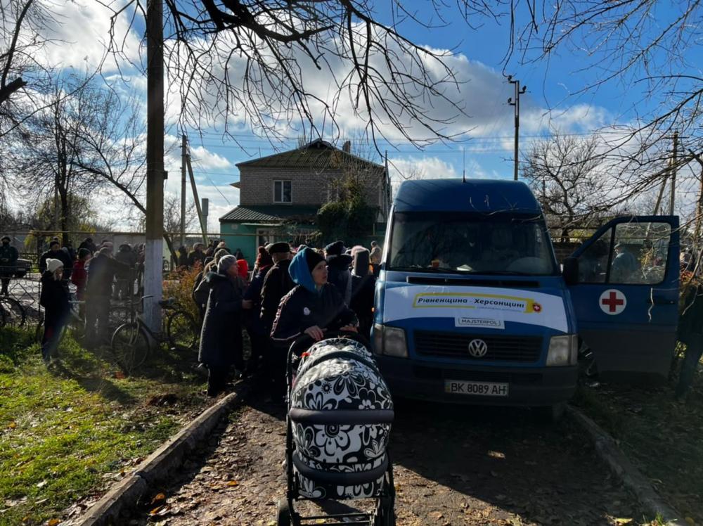 Перші буси із допомогою від Рівненщини розвантажили у селах Чорнобаївка та Киселівка, а також у Херсоні.