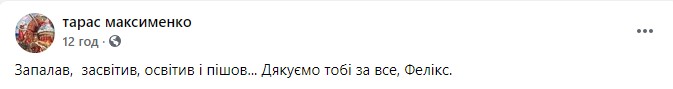 Дуже багато друзів буде сумувати за тобою, Феліксе. Ніколи не забудемо твого добра, таланту і жартів!