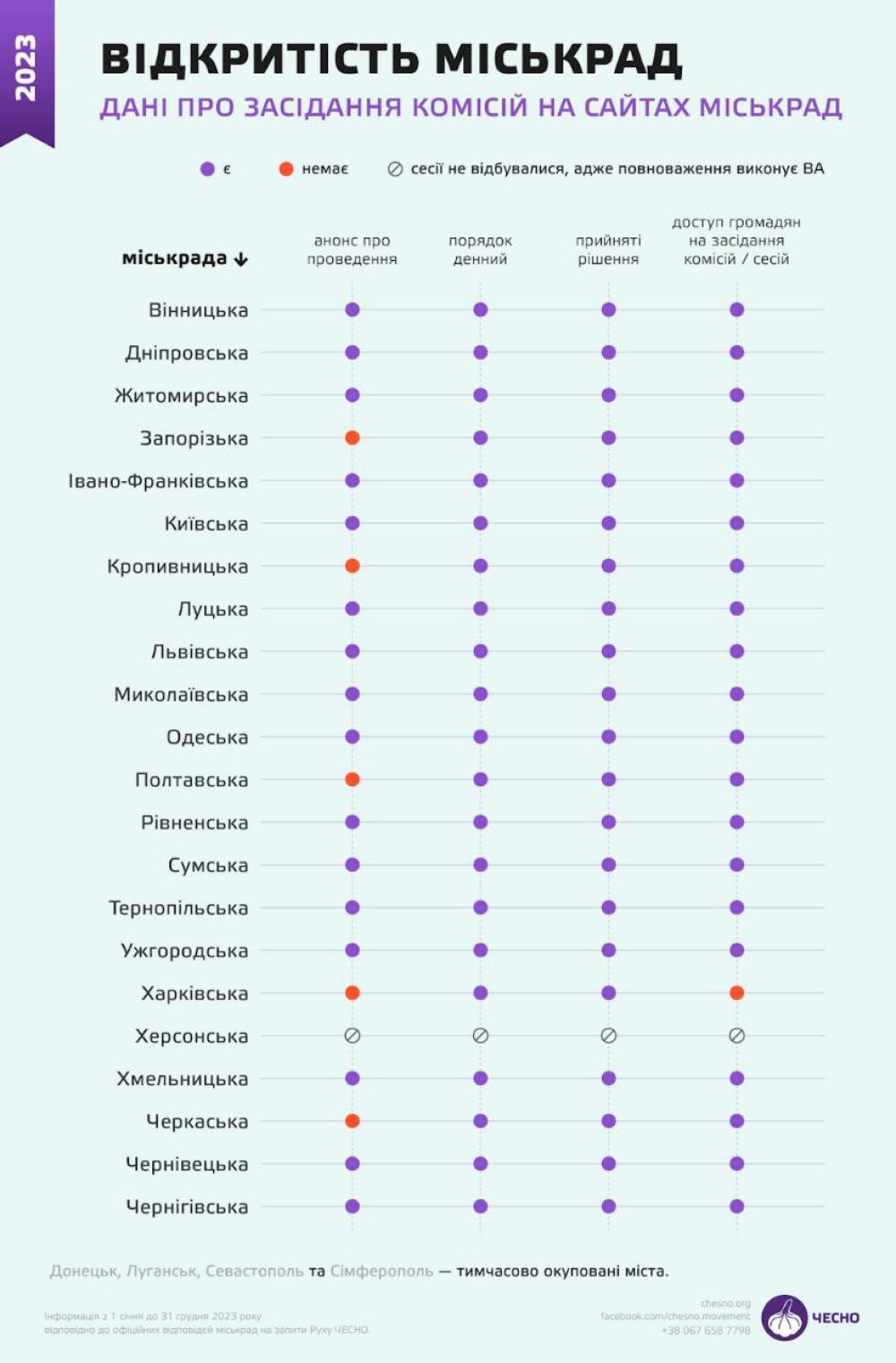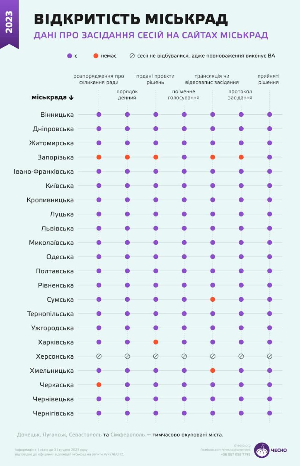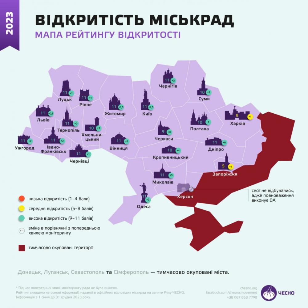Рух "Чесно" оприлюднив рейтинг відкритості міських рад в Україні.