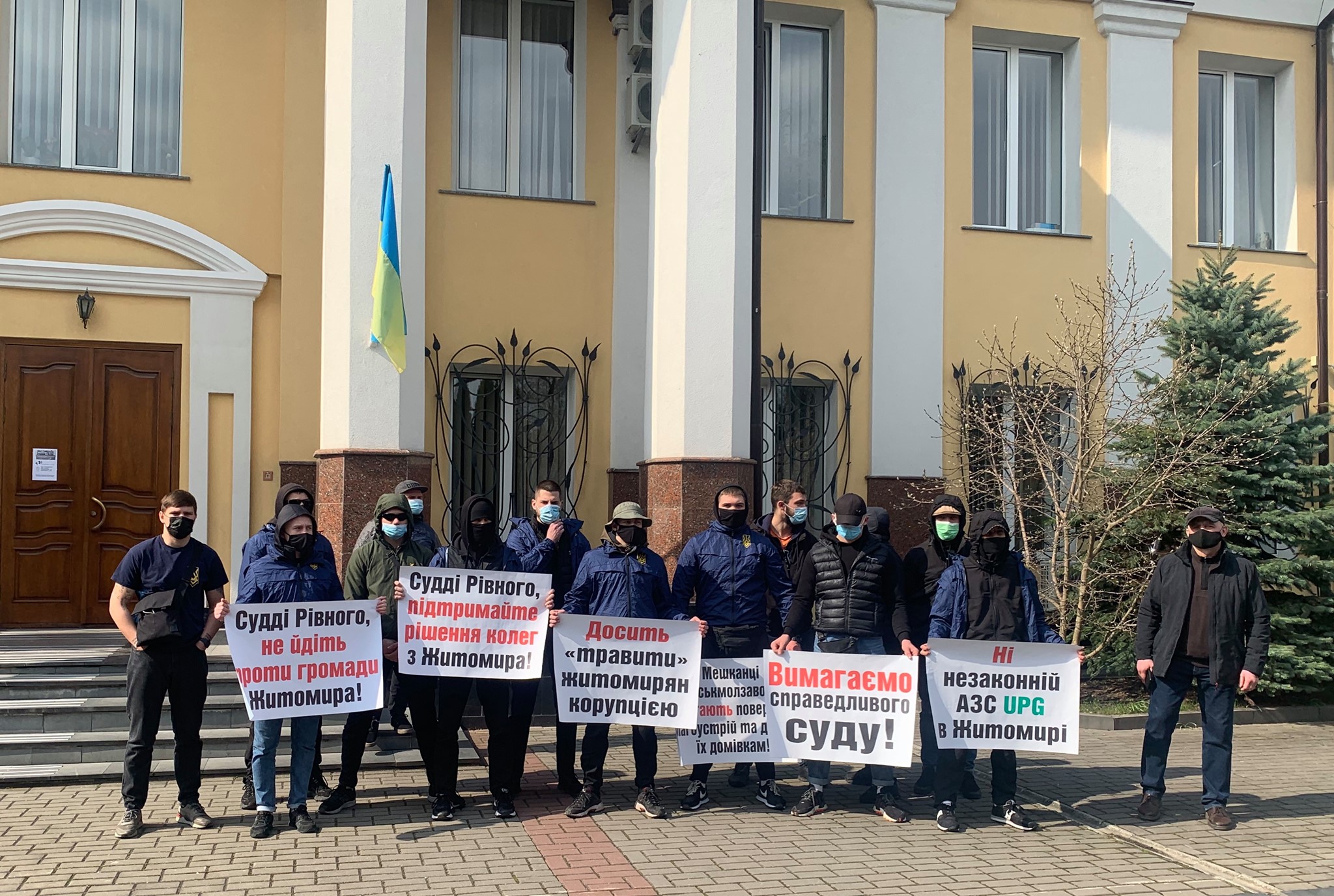 Представники Рівненського ОО Haцкopпycy прийшли під стіни суду із закликом прийняти правильне рішення на користь жителів сусіднього міста.