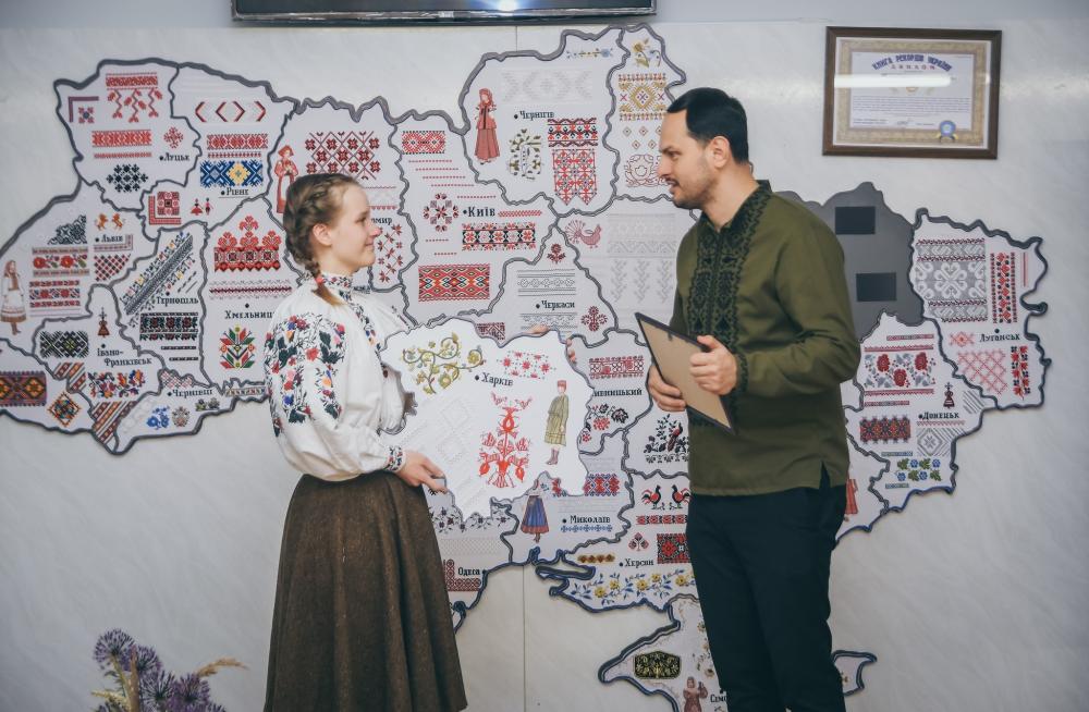 9 учениць та 3 майстрині з коледжу індустрії моди і краси сьогодні презентували унікальну мапу України. Кожен регіон – окремий вишитий елемент. Загалом 36 технік вишивки.