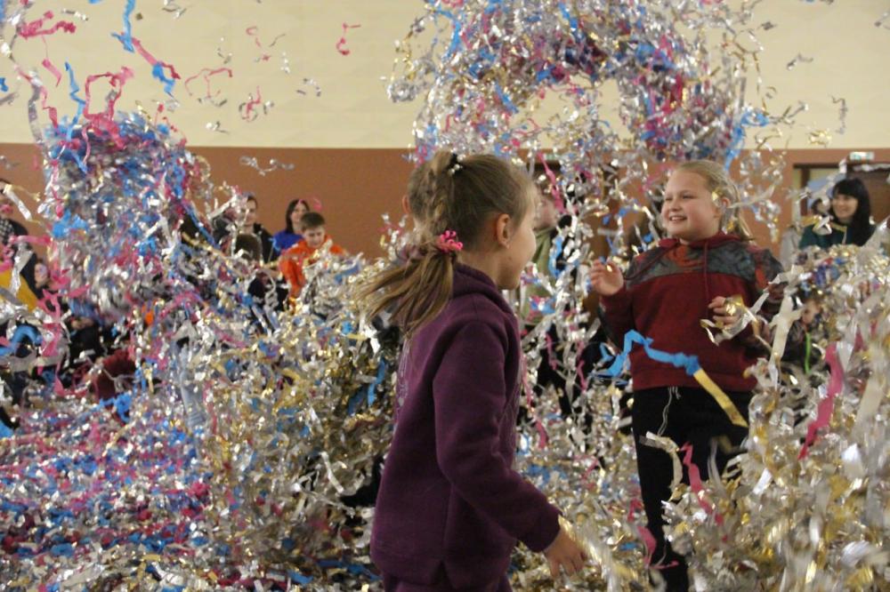 Різнокольоровий сніг, солодкі подарунки та гарний настрій отримали діти-переселенці від волонтерів громадської організації «Рівне Разом» і шоу-студії «M Рarty» під час свята Миколая у МПК «Текстильник» 17 грудня.