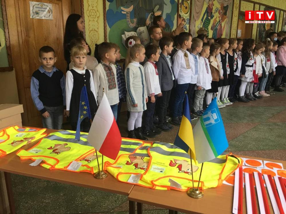 Цю школу обрали не випадково, справа у тім, що в навчальному закладі є 4 класи, які вимушені ходити у другу зміну. Патрульні поліцейські для діток проводять уроки по правилам безпеки на дорозі. Найбільше акцентують увагу на темну пору доби. Тож саме цим 4 класам вручили світловідбиваючі елементи.