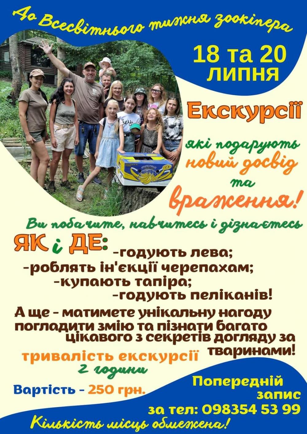 "Екскурсії відкриють Вам багатогранний світ життя звірів, навчать дбати про них, відкриють секрети та хитрощі, як знайти підхід до найвпертіших підопічних, допоможуть отримати новий, цікавий досвід з догляду та піклування за тваринами.