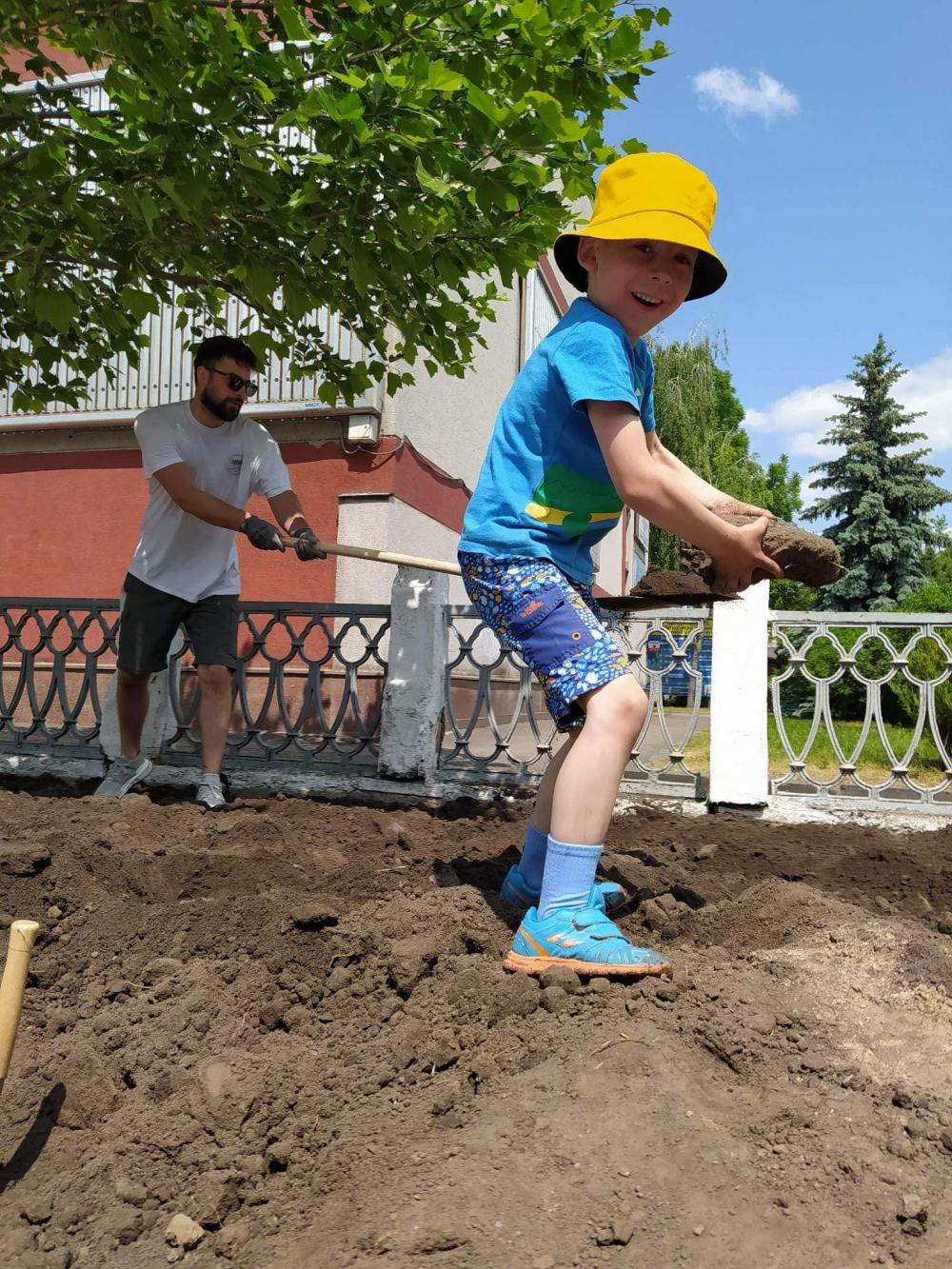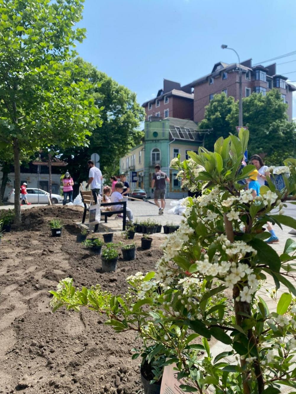 Спершу там вигрібали будівельне сміття з лунок, завозили ґрунт, монтували лави. Потім все гарно розпланували, порівняли, висадили рослинки та полили.