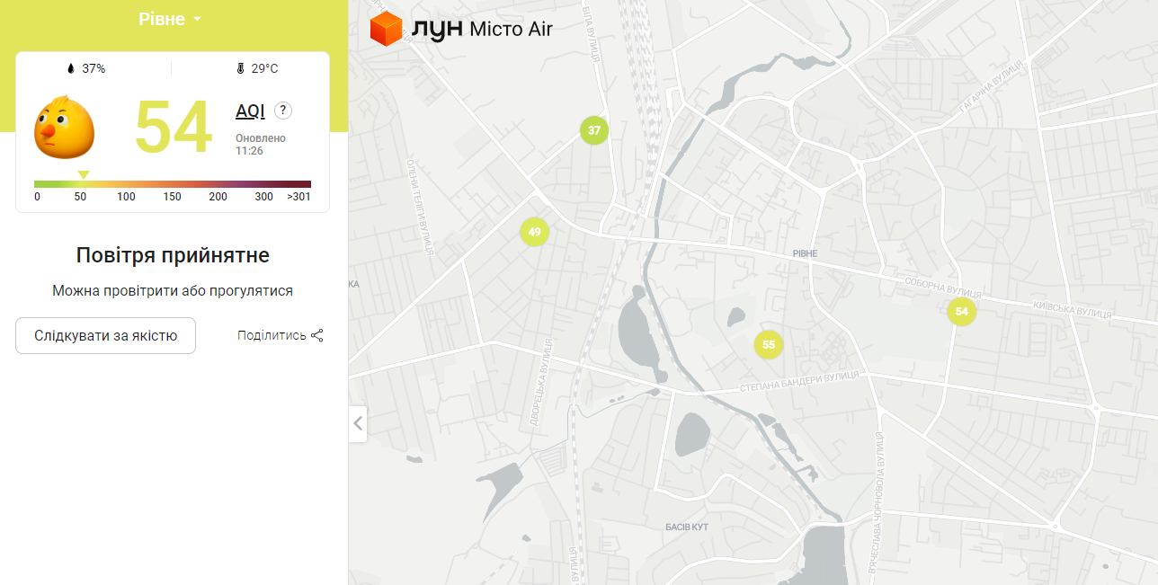 Будь-хто з рівнян може зайти на сайт чи мобільний додаток і перевірити стан повітря у місті чи конкретному мікрорайоні.