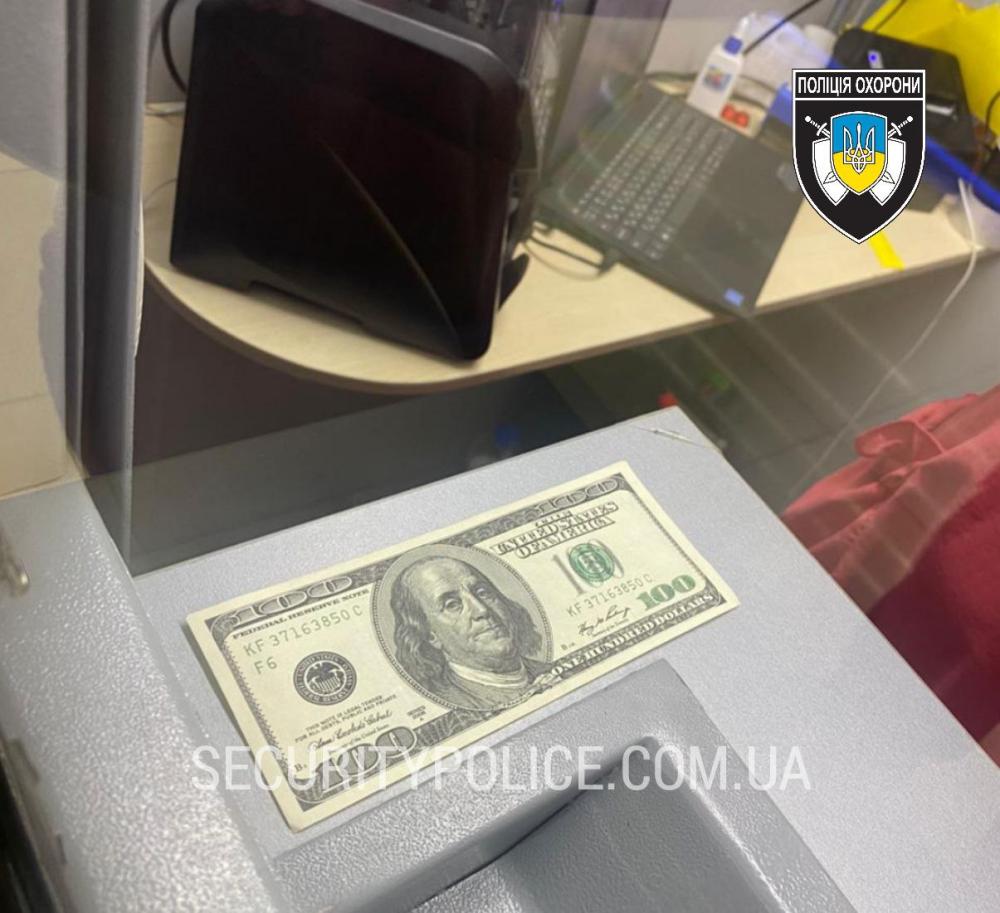 Правоохоронці з'ясували, що жінка прийшла до пункту обміну валют з метою обміняти стодоларову купюру на гривні. Працівниця обмінника помітила фальшиву банкноту та натиснула тривожну кнопку. Поліцейські охорони викликали слідчо-оперативну групу для з'ясування всіх обставин події.