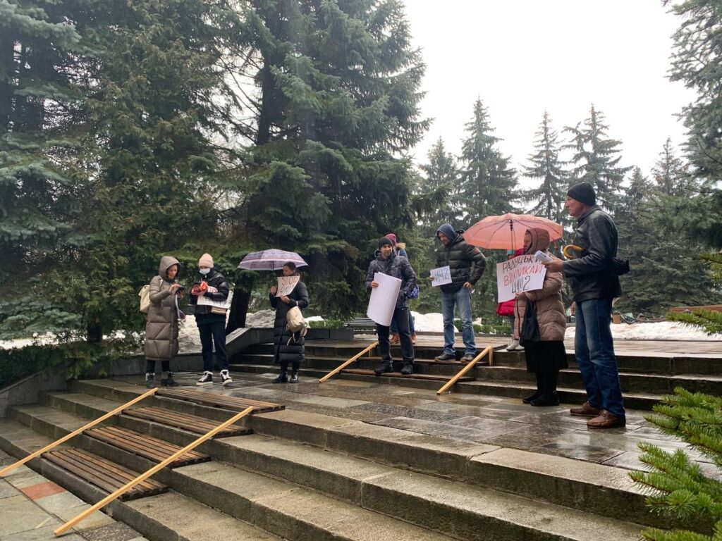Під стінами Рівненської міської ради зібралися протестувальники. Люди вимагають зняти з розгляду законопроект 4142.