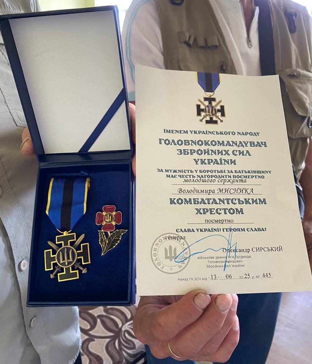 Відзнакою Головнокомандувача Збройних сил України "Комбатантський хрест" посмертно нагородили військовослужбовця Володимира Мисника із села Пустоіванне.