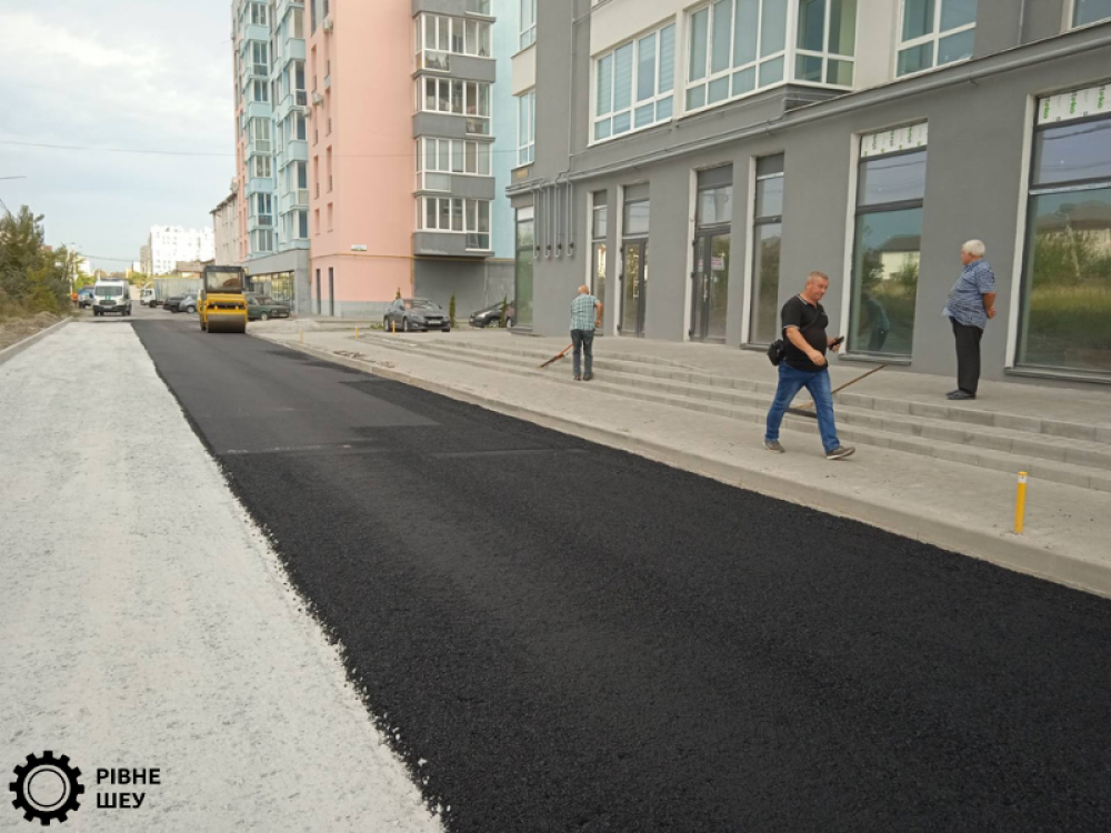 За тиждень працівники Рівненського міськШЕУ встигли за допомогою спецтехніки розчистити територію, розрівняти шар ґрунту із використанням щебеню під вкладання асфальтобетонного покриття, встановити бордюри.