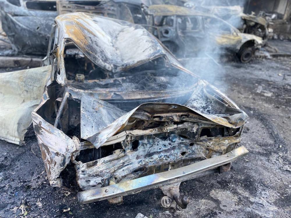 В 10:45 сталося влучання на паркувальний майданчик поблизу дев’ятиповерхового Будинку побуту «Ювілейний».