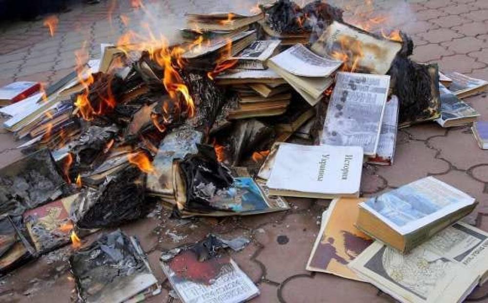 На тимчасово окупованих територіях російські війська нищать не тільки споруди, в яких знаходяться бібліотеки, але й власне українські книжки, зокрема підручники з історії та української літератури. Так звана «воєнна поліція» вилучає українську художню та історичну літературу з бібліотек на територіях Луганської, Донецької, Херсонської областей.