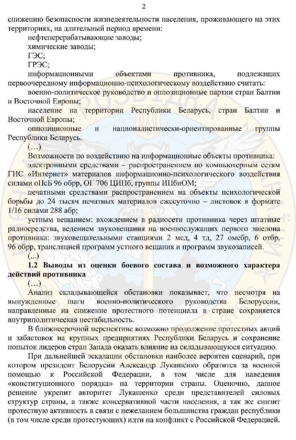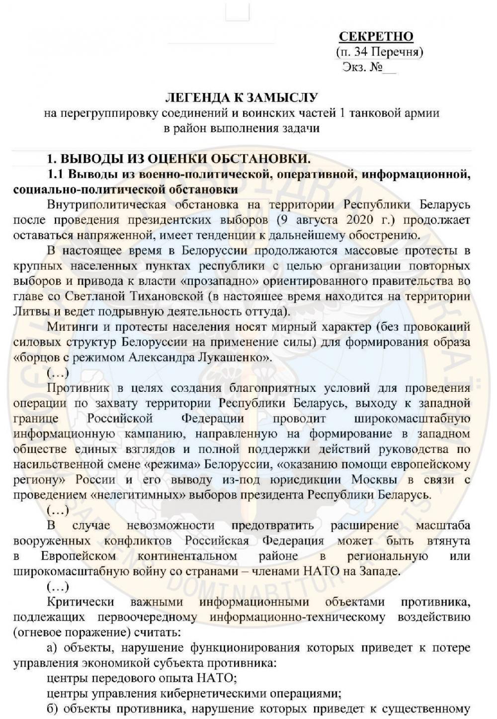 Окупація білорусі планувалася під приводом уникнення втягування росії “в Европейском континентальном районе в региональную или широкомасштабную войну со странами – членами НАТО на Западе”.
