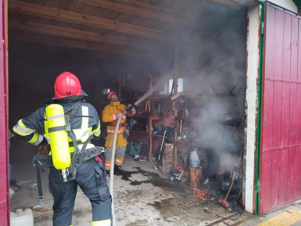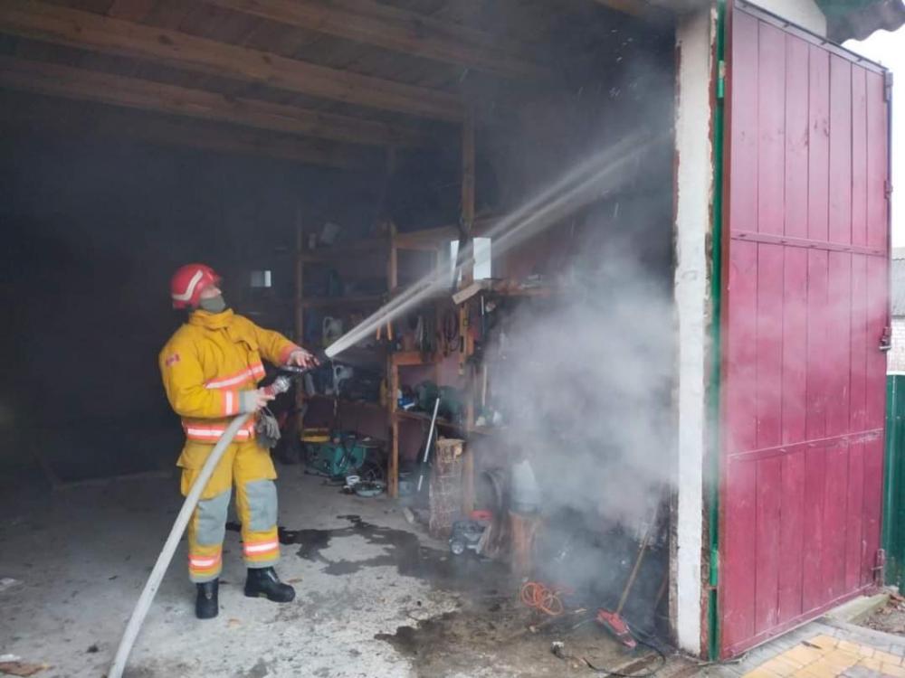 Прибувши за вказаною адресою вогнеборці встановили, що осередок пожежі знаходиться в середині гаражу, існувала загроза поширення вогню на поряд розташований житловий будинок. На гасіння було подано вогнегасячі речовини.