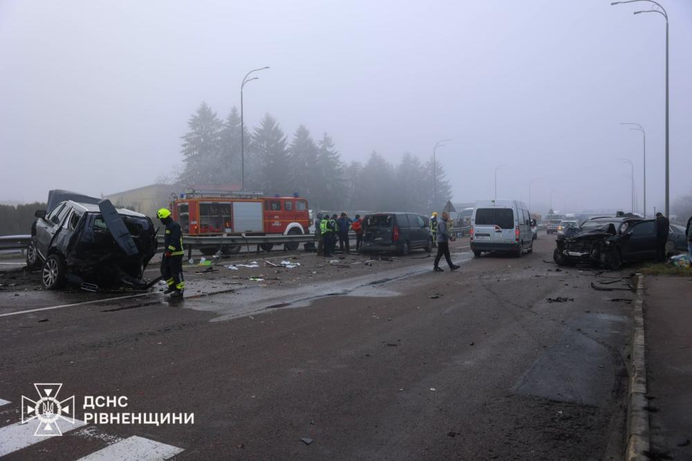 Учора о 13:07 до Служби порятунку «101» надійшло повідомлення про дорожньо-транспортну пригоду за участю восьми транспортних засобів на автодорозі Київ–Чоп поблизу села Біла Криниця Рівненського району.