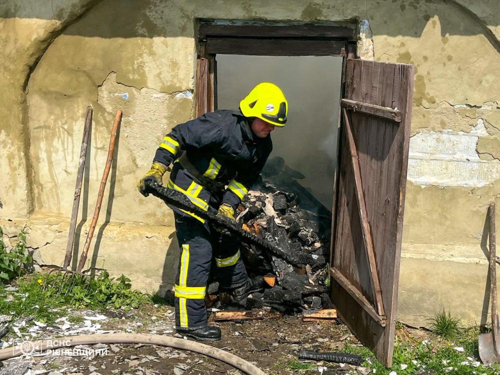На момент приїзду ДСНС-ників було охоплено господарчу споруду, а також була загроза перекидання вогню на суміжну літню кухню та житловий будинок. На гасіння оперативно було подано вогнегасні речовини.