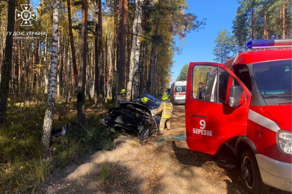 До рятувальників ДСНС надійшло повідомлення від поліцейських про ДТП за участю легкового автомобіля поблизу села Яцьковичі Березнівської ТГ Рівненського району. В автомобілі затиснуло людину.
