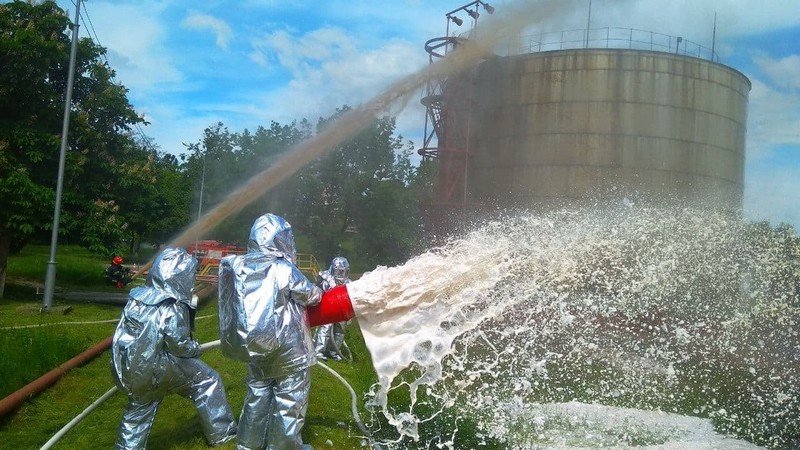 Паралельно з подачею ГПС-600, виконуючи завдання штабу пожежогасіння, аби не допустити поширення вогню на найближчі резервуари з мазутом, рятувальники використали лафетні стволи для відпрацювання охолодження сусідніх резервуарів. Всього на відпрацюванні ввідної були задіяні 5 одиниць пожежної та спеціальної техні¬ки та 22 чоловіка особового складу.