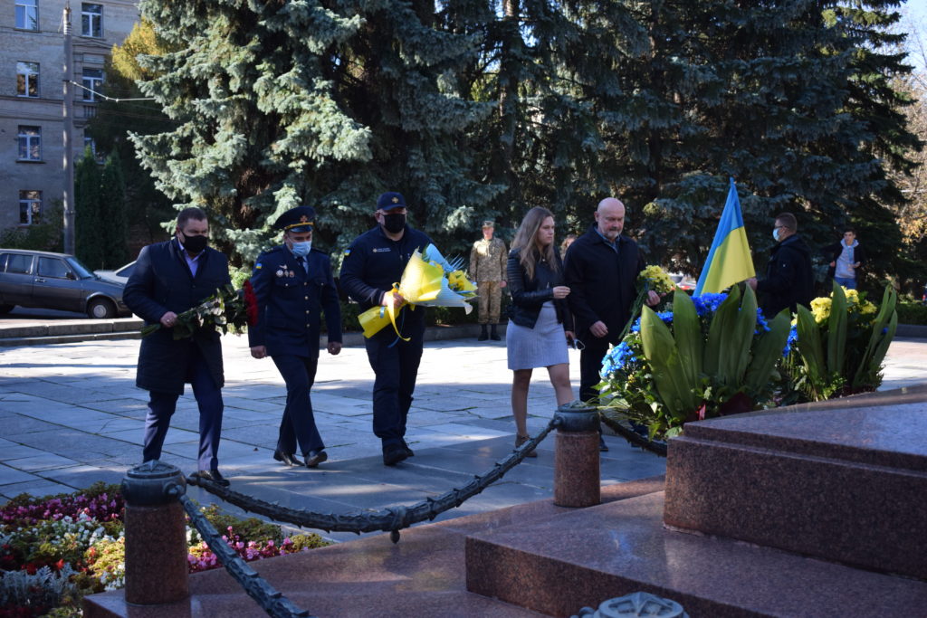 Захід відбувався на кладовищі «Нове». Також рятувальники поклали квіти до пам`ятного знаку "Загиблим за Україну" на площі Магдебурзького права.
