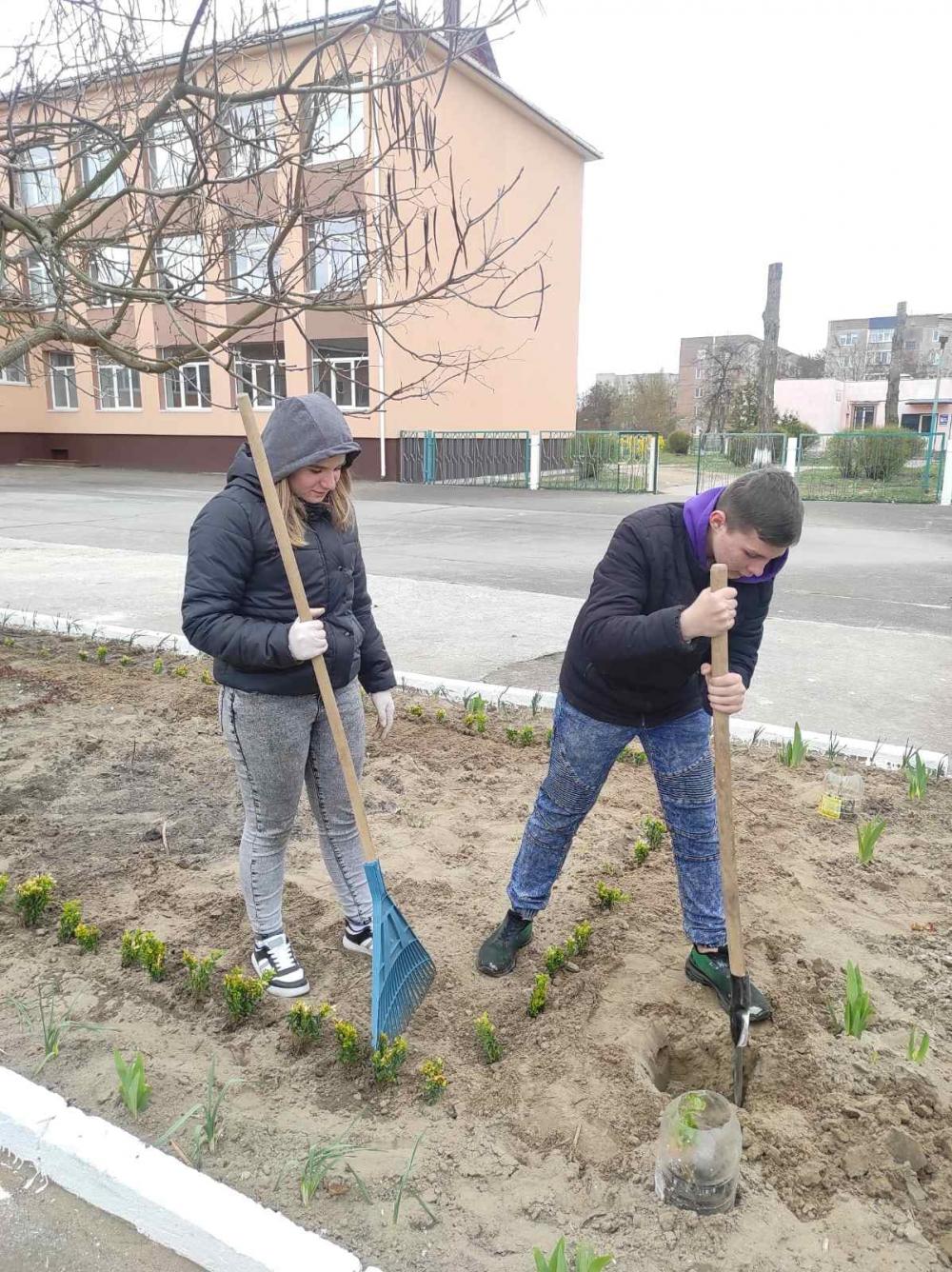 Випускники , учні 11-А, 11-Б класів та їх класні керівники ( Нагорна Н.І., Нікітчук Л.І.) долучились до висадження саджанців вишень на Алеї випускників. Також було висаджено 200 кущів самшиту на пришкільних клумбах. Нехай швидко ростуть кущі та дерева, радуючи учнів, батьків, працівників ліцею та милують око всім перехожим!