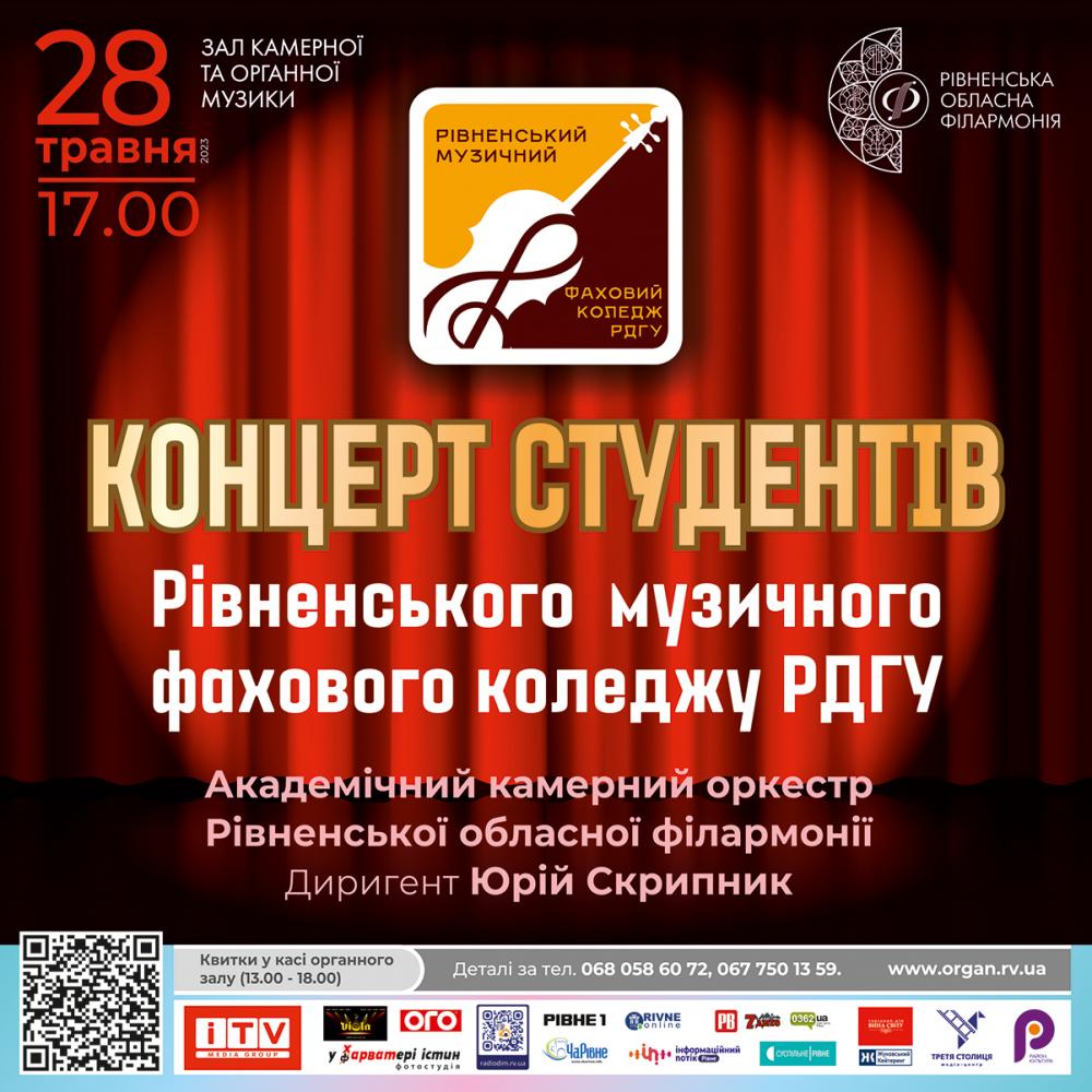 28 травня о 17:00 пройде концерт студентів Рівненського музичного фахового коледжу РДГУ.
