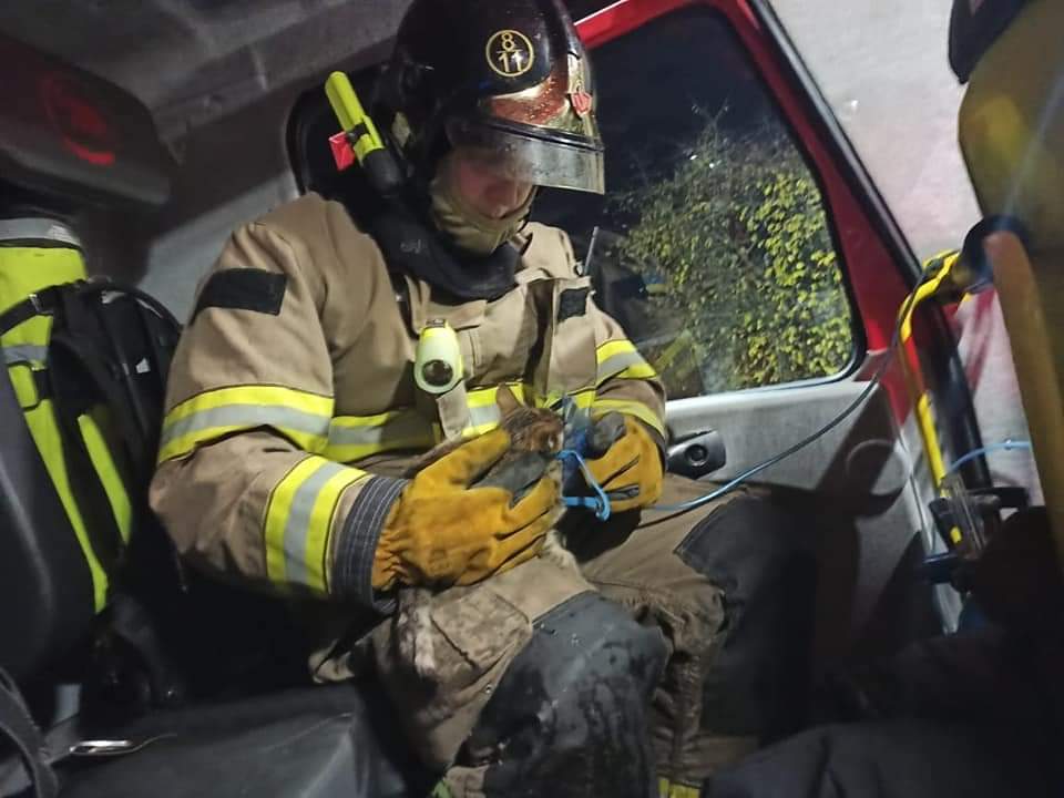 Сарненські вогнеборці врятували котеня, яке вчаділо під час пожежі