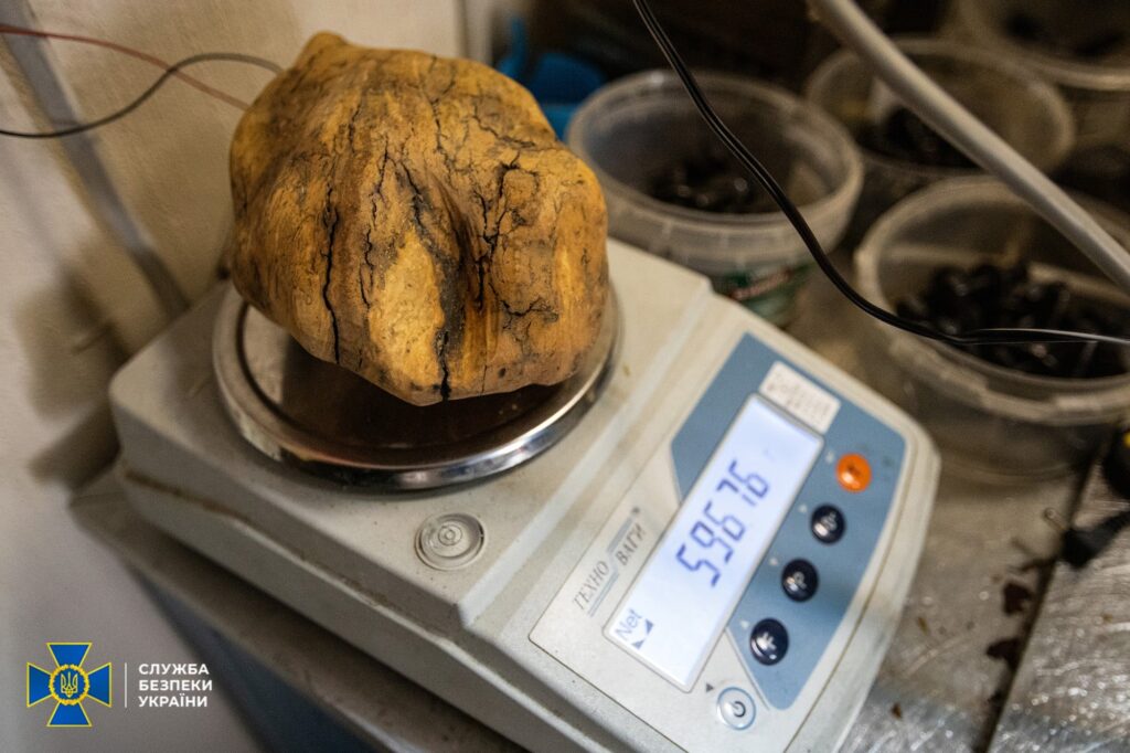 • понад 1 тонну незаконно видобутого бурштину сирцю;
