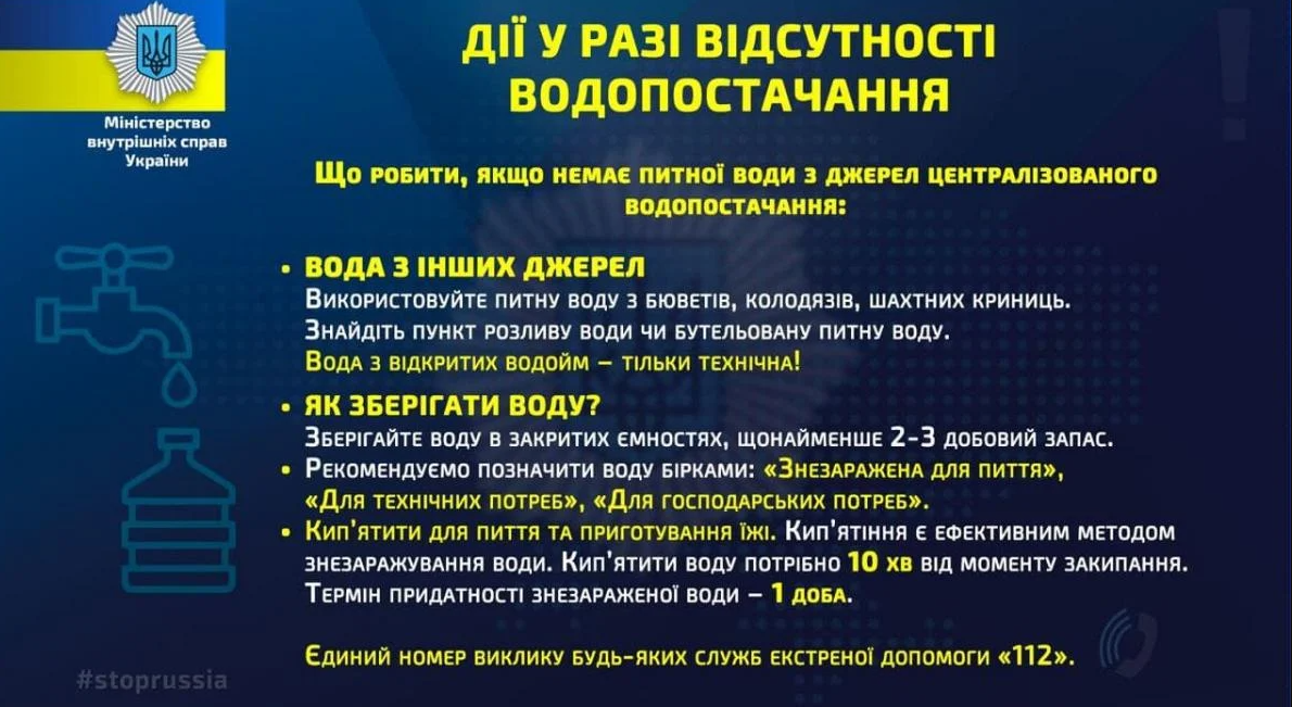 - Для пиття і приготування їжі воду потрібно кип'ятити не менше 10 хвилин або знезаразити.